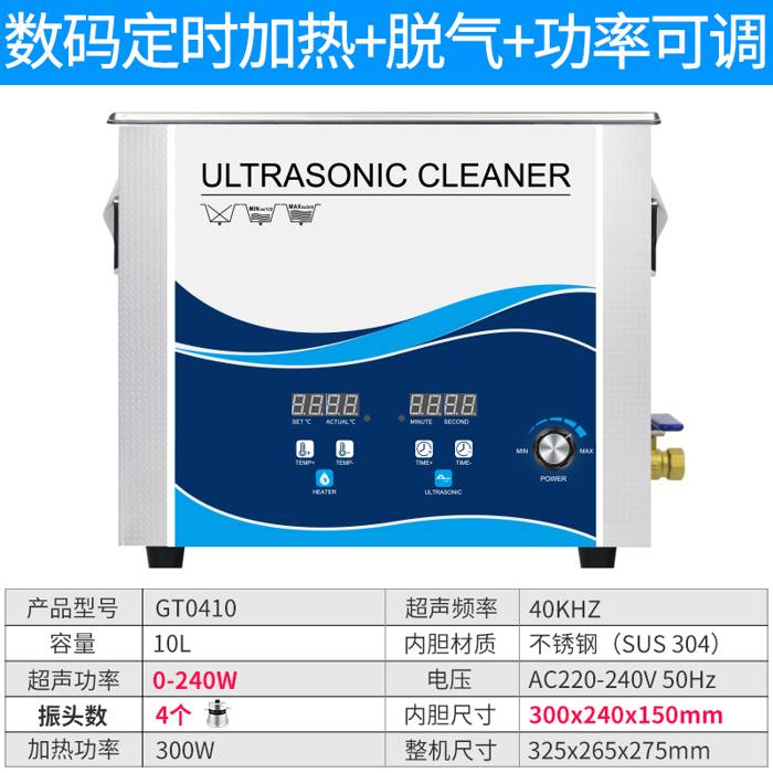 冠博仕GT0410可調(diào)功率超聲波清洗機10L容量240W功率