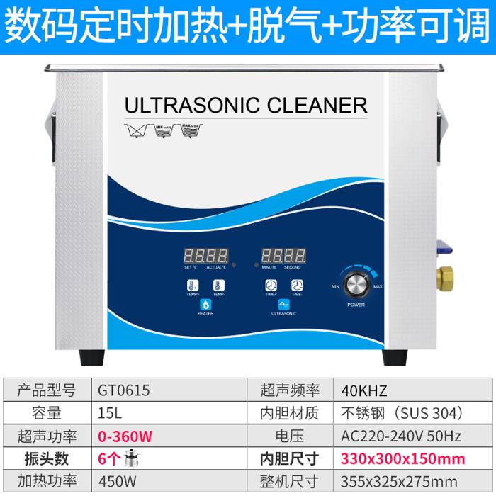 冠博仕GT0615可調(diào)功率超聲波清洗機(jī)15L容量360W功率
