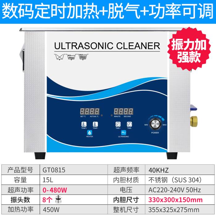 冠博仕GT0815可調(diào)功率超聲波清洗機(jī)15L容量480W功率