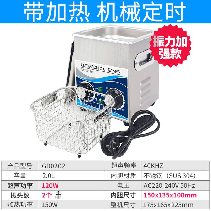 冠博仕GD0202機械帶加熱超聲波清洗機2L容量120W功率