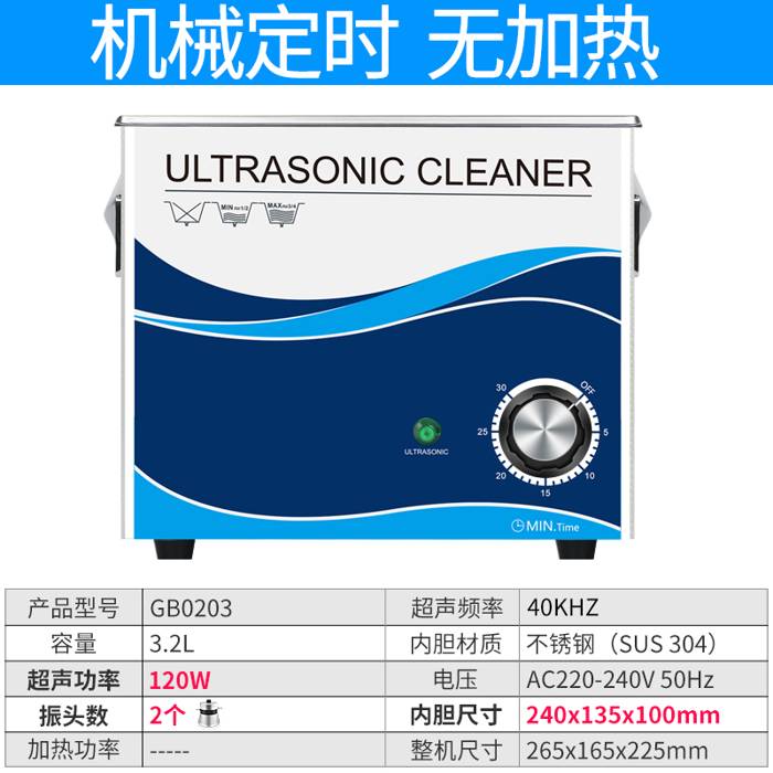 冠博仕GB0203機(jī)械不加熱超聲波清洗機(jī)3.2L容量120W功率