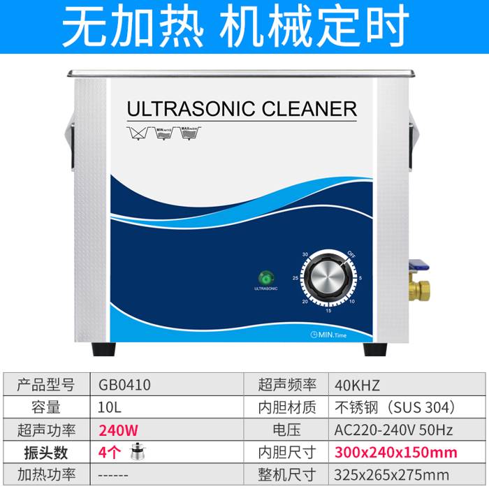 冠博仕GB0410機械不加熱超聲波清洗機10L容量240W功率