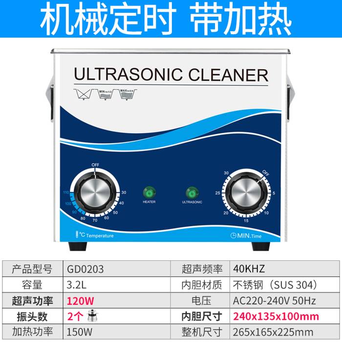 冠博仕GD0203機械帶加熱超聲波清洗機3.2L容量120W功率