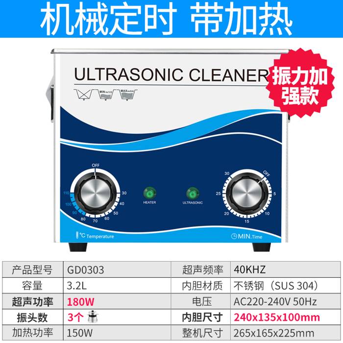 冠博仕GD0303機(jī)械帶加熱超聲波清洗機(jī)3.2L容量180W功率