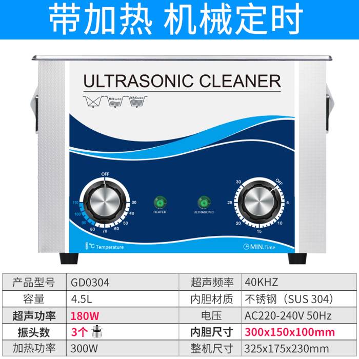 冠博仕GD0304機(jī)械帶加熱超聲波清洗機(jī)4.5L容量180W功率