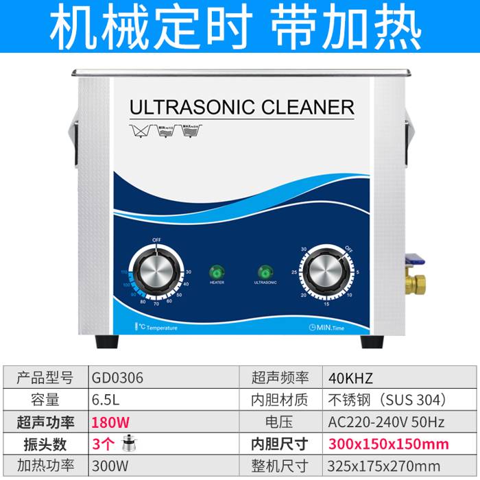 冠博仕GD0306機(jī)械帶加熱超聲波清洗機(jī)6.5L容量180W功率